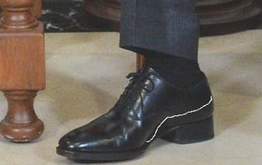 В качестве доказательства Шевчук приводит приближенный снимок ботинка Владимира Путина, на котором «фигурно» подчеркивает высокую платформу.